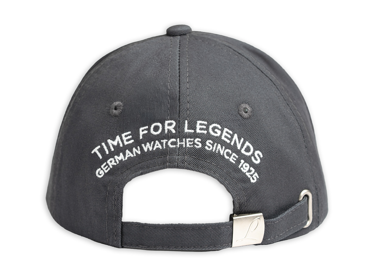 This grey cap impresses with its clean design and comfortable fit, making it a must-have for every Laco fan. A red, finely embroidered Laco logo adorns the front, while on the back, above the adjustable opening, the slogan “TIME FOR LEGENDS – GERMAN WATCHES SINCE 1925” is stitched in white. The robust metal closure with embossed L-logo allows for individual size adjustment, and embroidered eyelets ensure optimal ventilation even on hot days. Made from 100 % cotton.