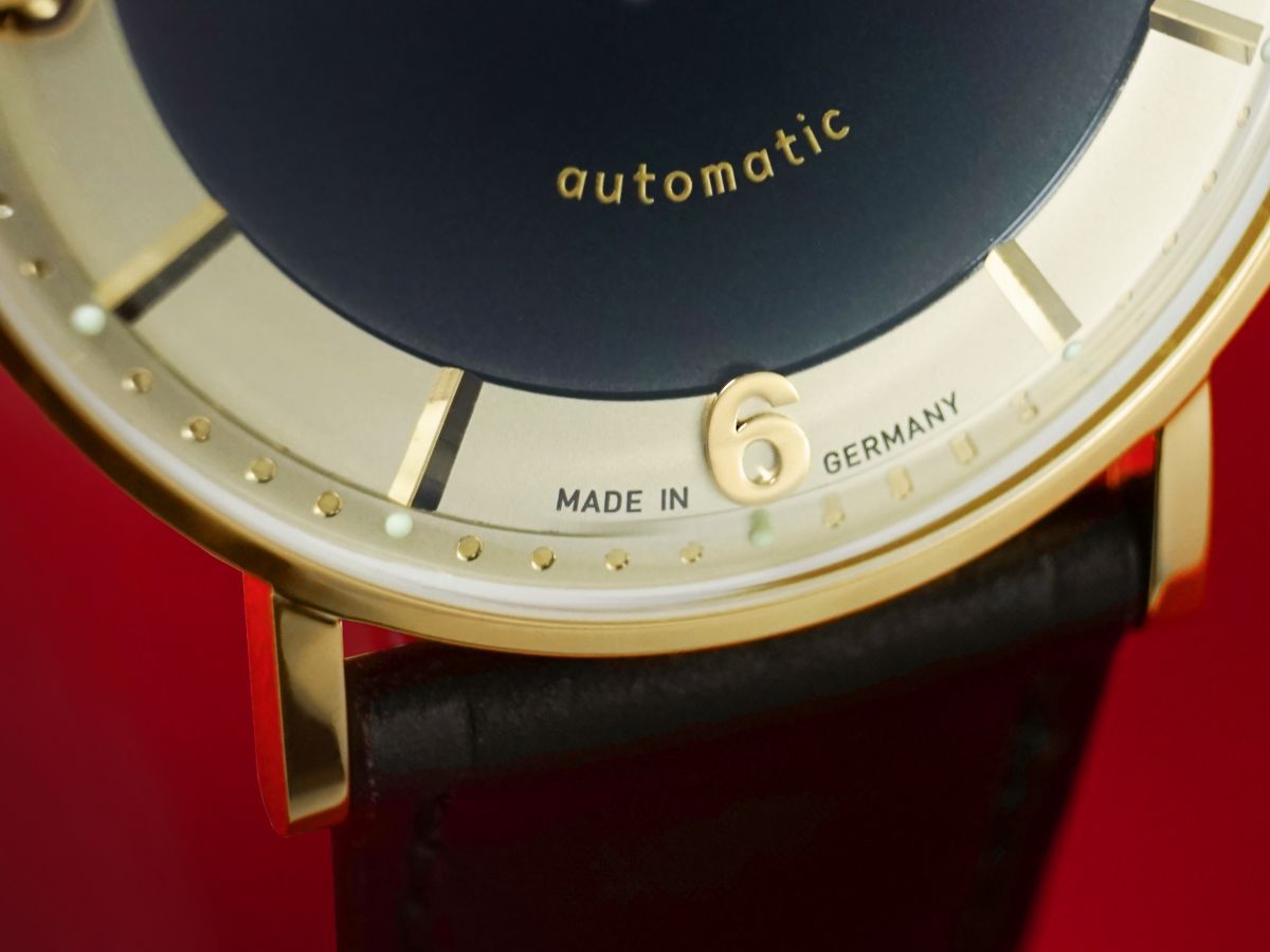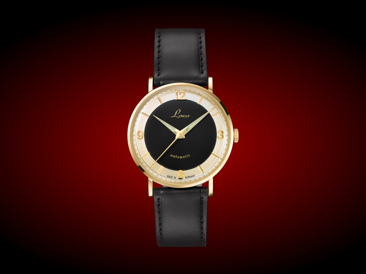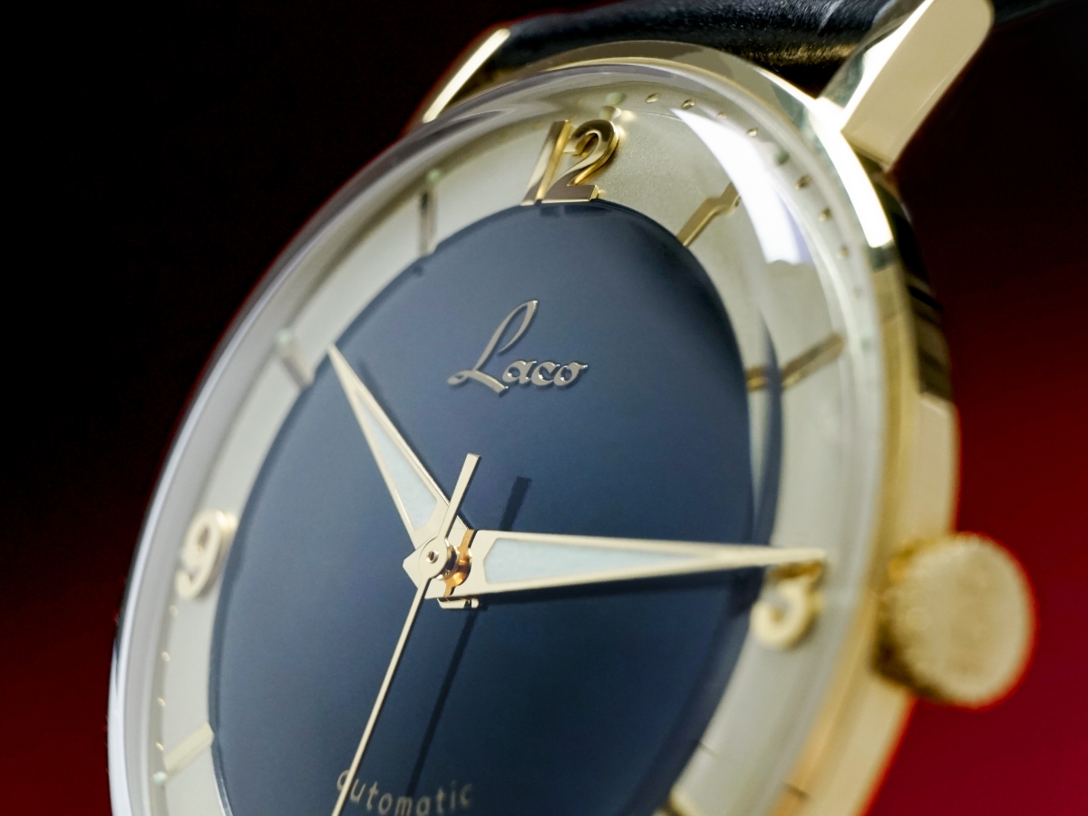 gold-colored minute track with Superluminova C3 hour dots, raised “Laco” logo - Hands: