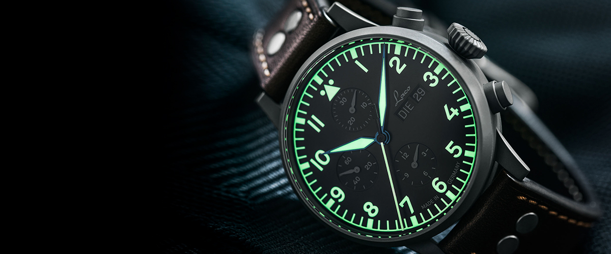 Complete reliability, maximum precision and excellent legibility from any angle and at any second - features essential for survival in the days of civilian and military flying in the 1930s and 1940s, when courageous aviation pioneers wore them in the cockpit. Consummate engineering skills ensured the reliability of these navigation instruments at high flying speeds, or when temperatures fluctuated suddenly and pressure dropped unexpectedly. The practical, robust design and clean lines of Laco pilot and navigator watches set new standards at that time, a trend which continues to the present day.