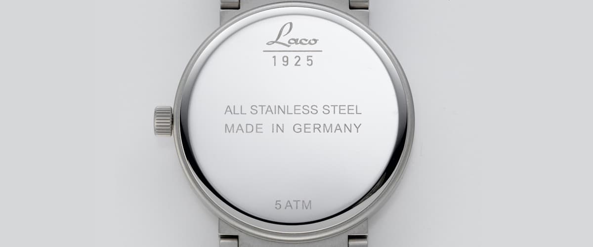 - Matt stainless steel case, flexible lugs, sapphire crystal, 5 ATM, case diameter 39 mm, hight 9,65 mm, closed case back