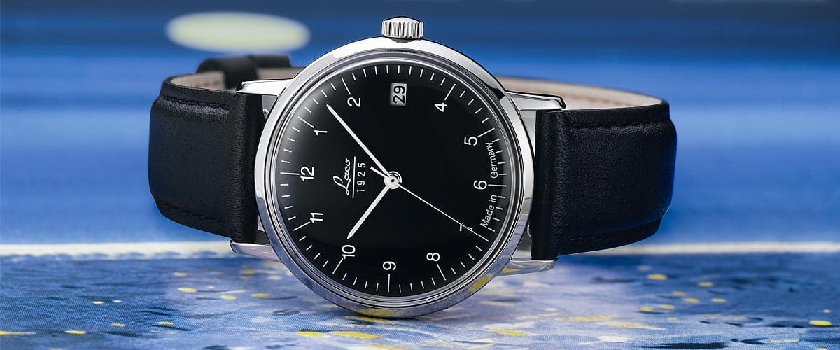 - Black calfleatherstrap, stainless steel buckle, 18 mm lug width