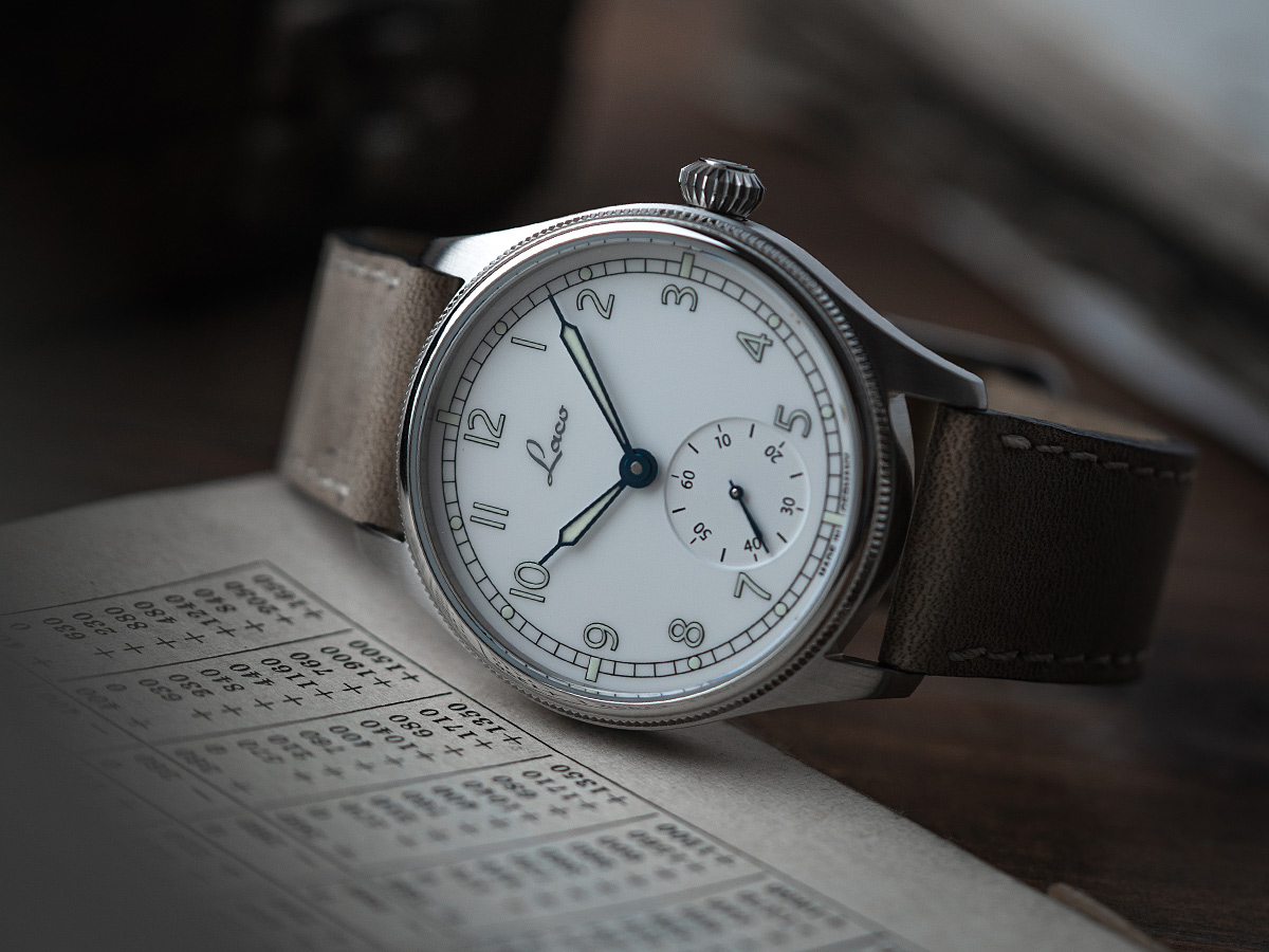 - handwinding movement Laco 261 bridges with Côtes de Genève, thermical blued screws, ratchet wheel and crown wheel with sun ray finish, ratchet wheel with engraved Laco Logo