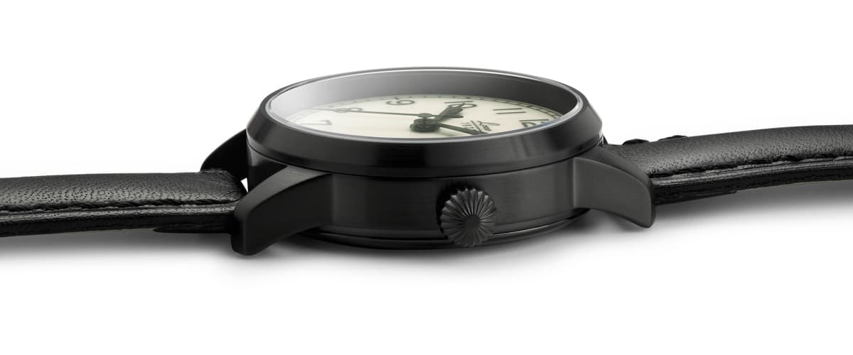 - Black calf leather strap, 18 mm lug width