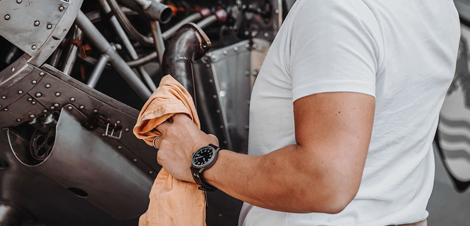 • Case shape with straight lugs and grey, matt surface to avoid reflections in the cockpit