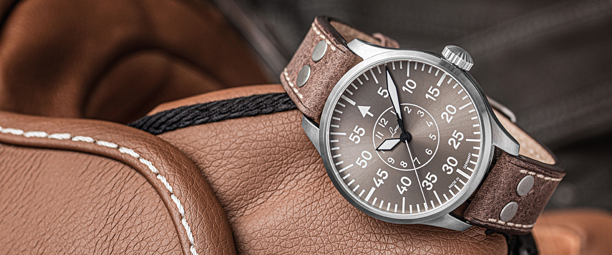 The "Aachen Taupe" limited to 500 pieces together with the Laco "Augsburg Taupe" is the new interpretation of our popular "Aachen" pilot watch. The taupe-coloured dial is elegantly staged by the sunburst finish and lends the watch its unmistakable sporty-elegant character.