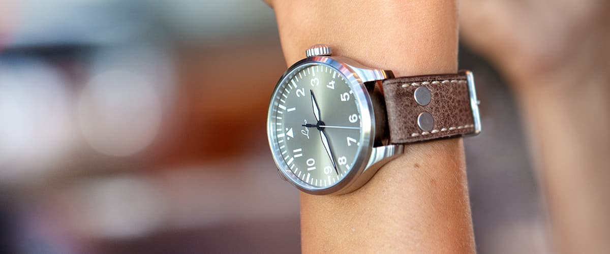 The "Augsburg Taupe" limited to 500 pieces together with the Laco "Aachen Taupe" is the new interpretation of our popular "Augsburg" pilot watch. The taupe dial is elegantly staged by the sunburst finish and lends the watch its unmistakable sporty-elegant character.