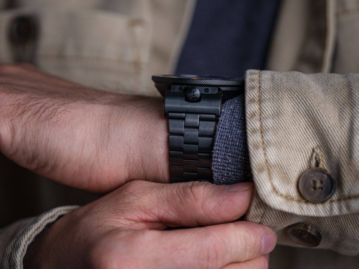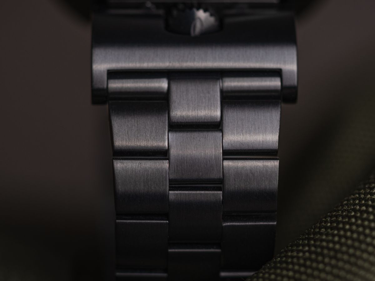 - Black metal bracelet with black DLC plating,